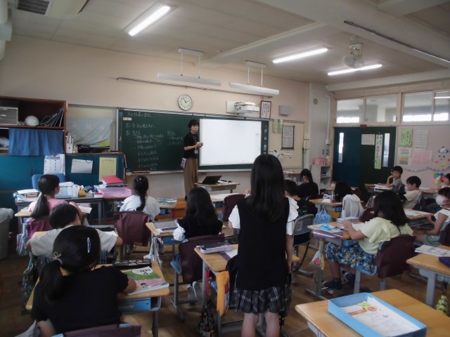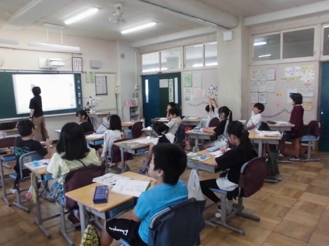 26日(木)5時間目、4年1組は理科の時間でした。「月の位置の変化」の学習に入りました。最初に、月について知っていることを書き出したり、発表したりしました。また、今、月は見えるかどうかについて考えました。