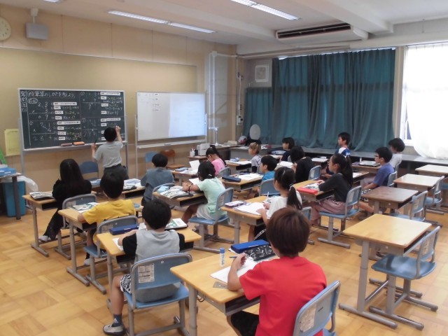 4日(金)2時間目、3年生は算数の時間でした。かけ算の筆算を学習しています。前回は、23✕3の筆算のしかたを学習しました。これをもとに、今回は、71✕4、13✕7、95✕3、46✕7の4種類の計算のしかたを考えました。答えの出し方が徐々に複雑になっていきます。筆算にするときは、縦に位をそろえて書くこと、繰り上がりの数字を小さく書いて残すことが大事です。