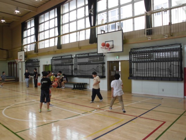 4日(金)昼休みの様子です。雨のため、外遊びができなくなりました。金曜日の昼休みは4年生が体育館で遊ぶことができます。担任の先生が付き添い、子どもたちはバスケットボールのシュート練習やフラフープ、ドッジボールなどをして体を動かしていました。