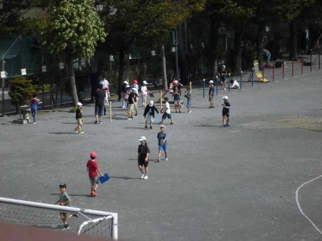 7日(月)2時間目、3年1組は理科の時間でした。「太陽と地面」の学習です。太陽が出ている時だったため、校庭に出て影のできるところを探したり、遮光板で太陽を観察したりしました。