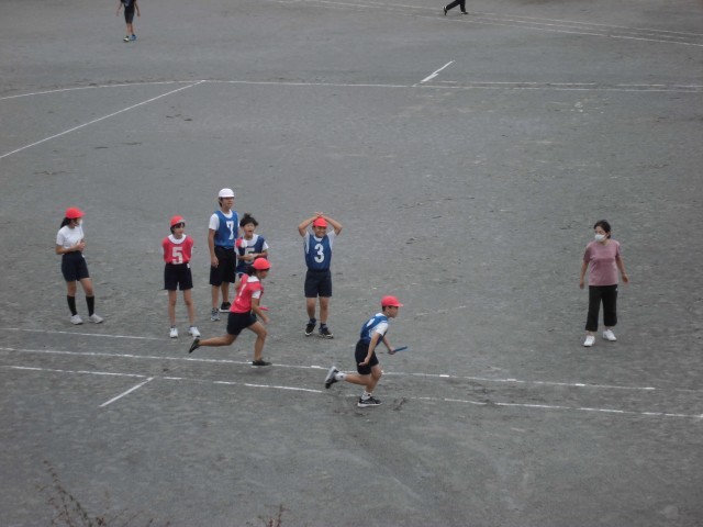7日(月)から6年生は中休みにリレーの練習をすることにしました。17日開催予定の連合体育大会まで続けます。他の学年の子どもたちは、トラック周辺を避けて遊具や体育倉庫近辺で遊びます。6年生のリレーを見て、応援する姿もあります。雨が続いたため、校庭の状態がよくない中での練習ですが、リレーの選手は頑張って走っていました。