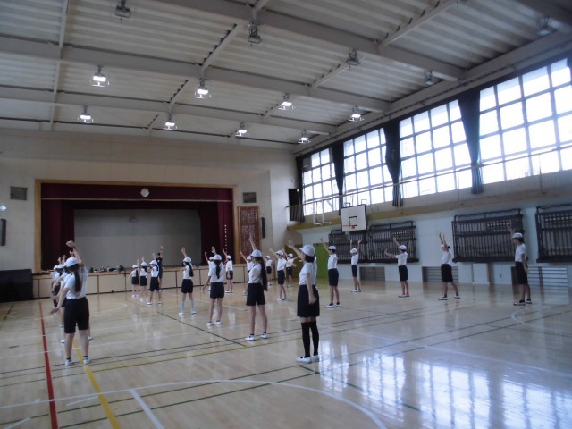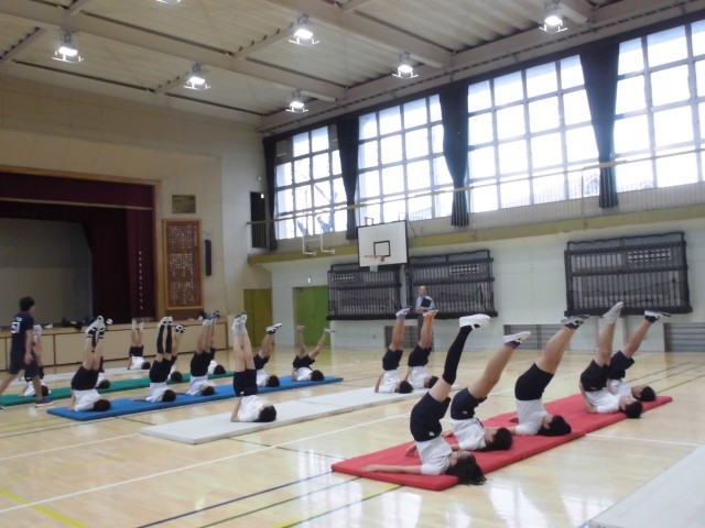 10日(木)2時間目、6年2組は体育の時間でした。「マット運動」の3回目です。準備運動は音楽に合わせて行い、運動の構成は担任の先生が考えました。準備運動の最後にコオーディネーショントレーニングのラディアンをしましたが、子どもたちのリズムがそろっていました。自分たちでマットを用意し、手首の柔軟性を高めたり、背倒立をしたりしました。その後、この時間のめあてを確認してから、各自の技の練習をしました。