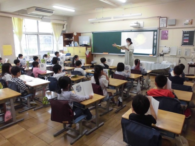 10日(木)5時間目、1年1組は国語の時間でした。下巻の教科書を初めて使いました。表紙を開くと「ともだち」と題した詩があります。今回はこの詩をみんなで読みました。全員で読んだり、一行ずつ列ごとに読んだりしました。