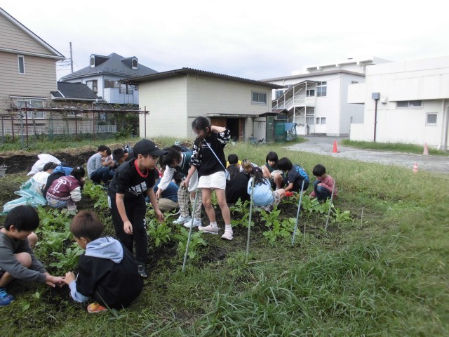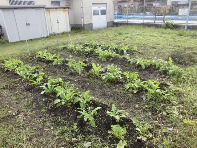 10日(木)6時間目、3年1組は総合的な学習の時間でした。3年生は先月「ダイコン」の種をまきました。そのダイコンが写真のように育っています。そこで、ダイコンの成長を助けるために、草取りをしました。隣りで2年2組がサツマイモ掘りをしていたので、静かに作業をしていました。
