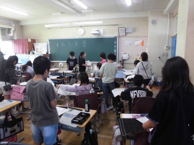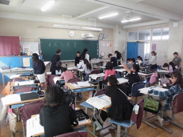 11日(金)1・2時間目、4年2組は書写の時間でした。季節を一つ選び、その季節のよさや楽しみを詩に表現しています。小筆を使って何度も書きました。