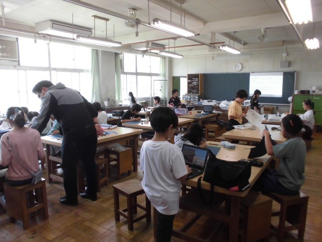 15日(火)3・4時間目、4年1組は図画工作の時間でした。「グラデーションのまち」と題して取り組んでいます。今回は、グラデーションの背景をつくることから始めました。次に、カッターでまちの影を作っていきました。子どもたちの思う「まち」がどのように描かれるのか、楽しみです。