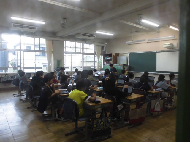 16日(水)朝学習の様子です。本校では朝学習の名称を「高ヶ坂タイム」と呼んでいます。水曜日のこの時間は、タブレット端末を使って「学習用ドリルソフト」に取り組んでいます。写真は1年生、2年生、3年生です。