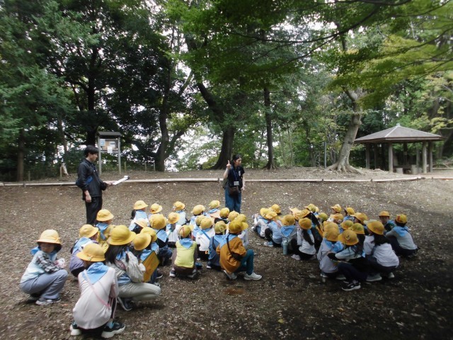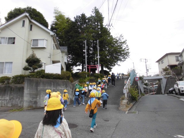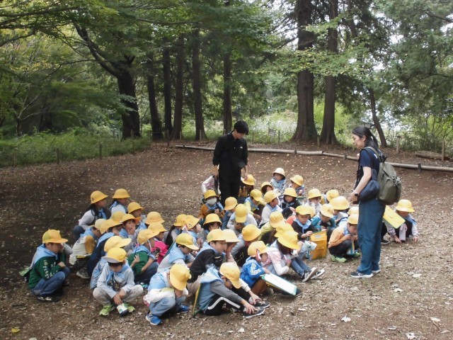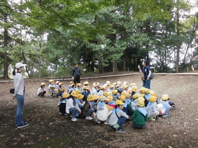 16日(水)午前9時20分、1年生は目的地「かしの木山自然公園」に到着しました。先生から、グループで行動すること、途中でトイレに行くことなどの大事な話を聞きました。