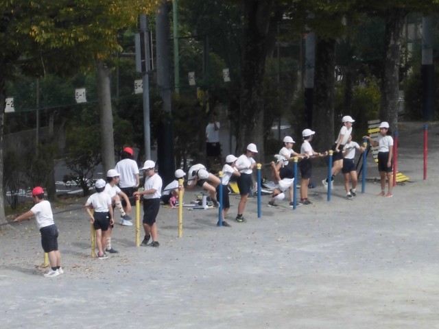 16日(水)4時間目、5年2組は体育の時間でした。1組の先生との学習です。今回は、これまで練習をしてきた鉄棒運動の発表会をしました。