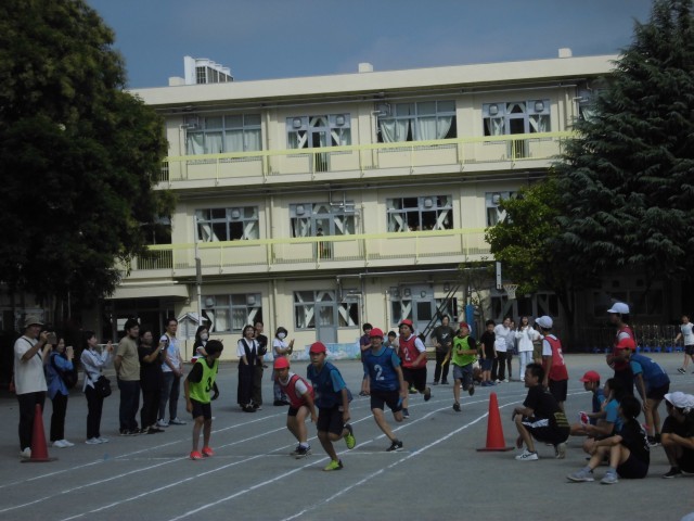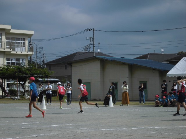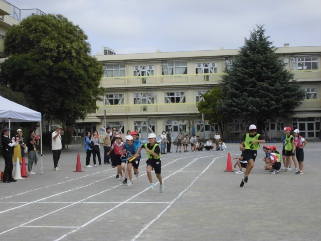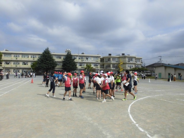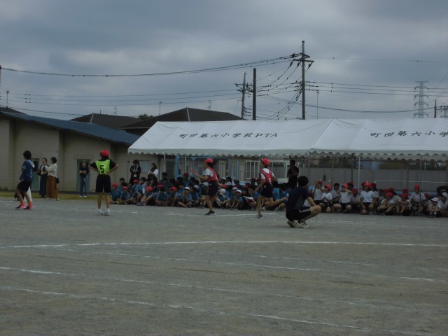 17日(木)6年生は連合体育大会に参加しました。最後の種目は、学校対抗リレーです。女子、男子の順で走り、各校からそれぞれ8名が出場しました。各テントからは熱い声援が送られていました。