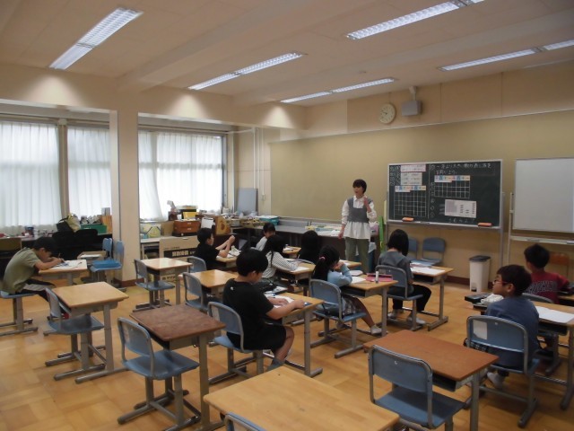 18日(金)2時間目、3年生は算数の時間でした。今回は、一万より大きい数の表し方を調べました。テーマパークの入場者数を1週間、1ヶ月間、1年間のデータをもとに読みました。