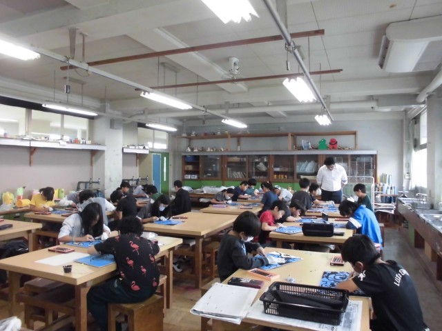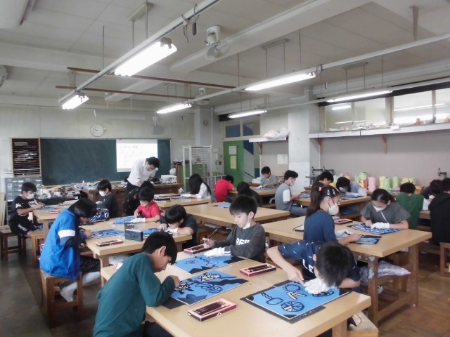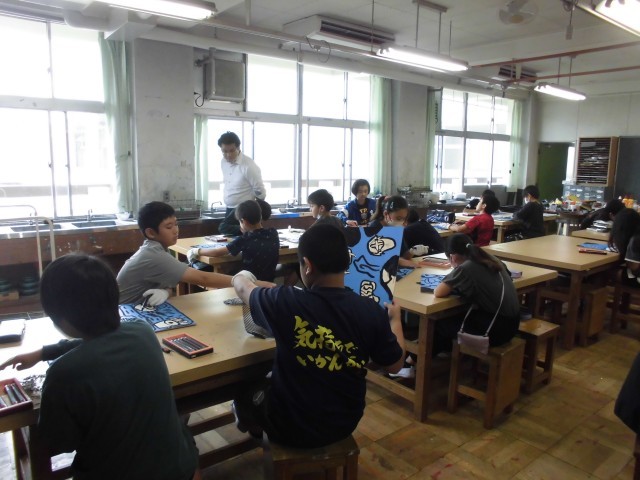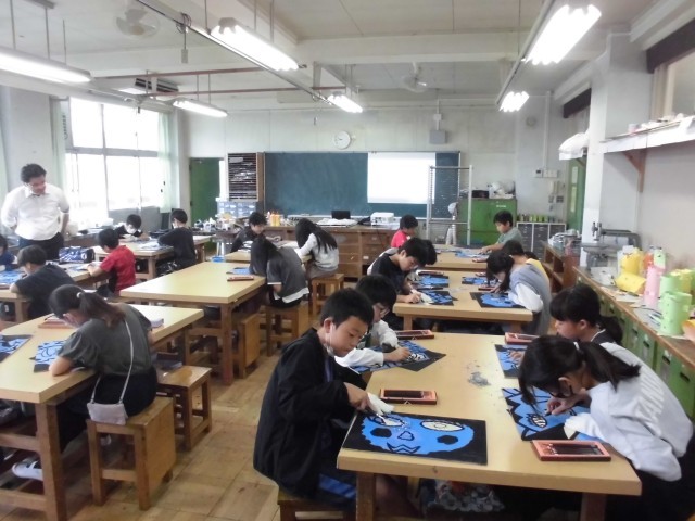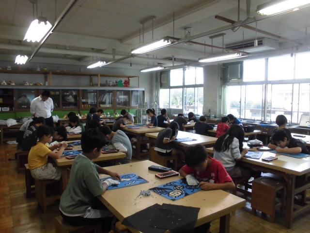 18日(金)1・2時間目、5年1組は図画工作の時間でした。「ふくわらい版画」と題して木版画に取り組んでいます。子どもたちは版木の下描きを完成させ、彫刻刀を使って彫り始めました。彫る前に安全に作業をするための確認をしました。版木の下には滑り止めシートを敷き、彫刻刀を持たない手に軍手をします。子どもたちは集中して取り組んでいました。
