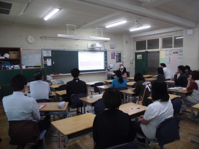 21日(月)放課後、先生たちの研修会を実施しました。(OJT研修会と呼んでいます。)今回は養護教諭が「感染症」について話をしました。感染症の理解を深めたり、「体調が悪い」と児童が言って来た時に注意すべきポイントについて確認したりすることができました。