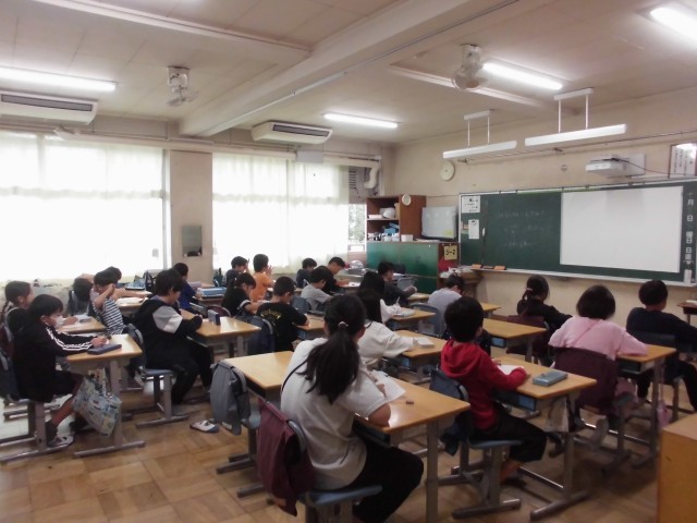 1年生から3年生まで、毎週火曜日の高ヶ坂タイムは「ミニ作文」に取り組みます。学年によってお題は違いますが、10分程度の時間で自分の考えを書くことができるようにしています。22日(火)のお題は、3年生が「煙体験をしたこと」、2年生が「町探検で頑張りたいこと」、1年生が「好きな食べ物」でした。