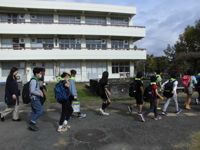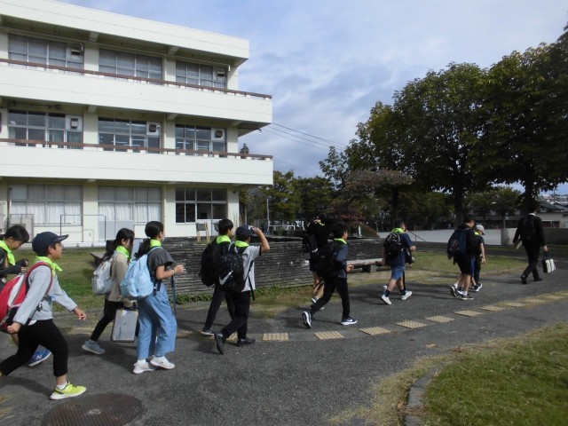 22日(火)午前9時20分、5年1組から順に歩き始めました。バスに乗るため、成瀬街道沿いにあるお店の駐車場まで移動しました。お店のご協力にいつも感謝しています。