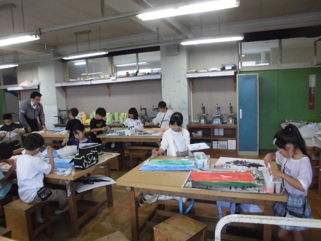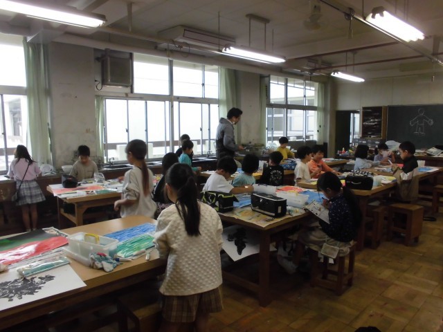 23日(水)1・2時間目、2年1組は図画工作の時間でした。「紙版画をつくろう」に取り組んでいます。今回は最初にインクをのせて刷ることをしました。次に、インクが乾くまでの間に、絵の具を使って背景の色塗りをしました。子どもたちは意欲的に取り組んでいました。