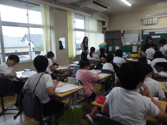 23日(水)3時間目、5年2組は外国語の時間でした。「自分ができることを伝え合う」をめあてに、I can 〜やYou can 〜の表現の仕方を学びました。イングリッシュ・ウイークでいらしているネイティブの先生も子どもたちと一緒に活動をしました。