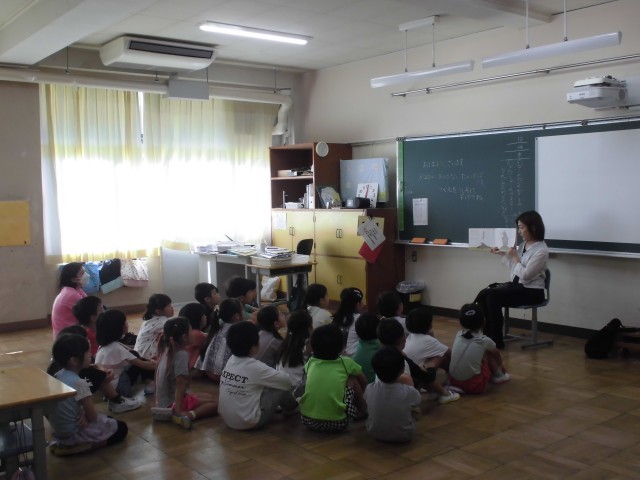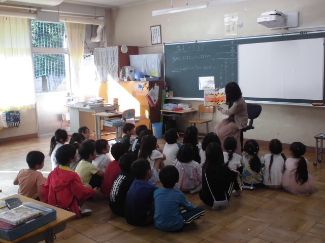 毎月第四木曜日の朝は、「おはなしたんぽぽ」の皆さんによる読み聞かせをしていただいています。「おはなしたんぽぽ」は、PTA活動の一つです。24日(木)午前8時20分から各教室で読み聞かせが始まりました。写真は、1年1組から3年1組までの様子です。