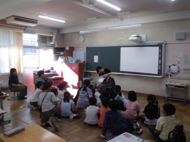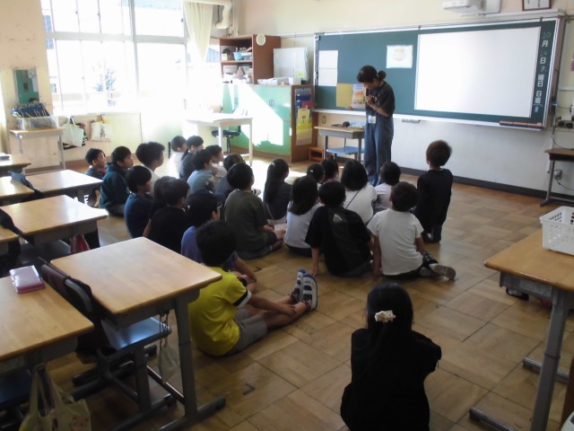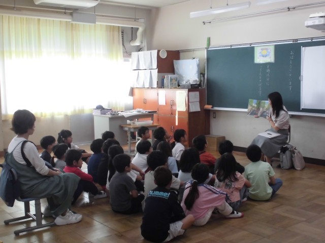 毎月第四木曜日の朝は、「おはなしたんぽぽ」の皆さんによる読み聞かせをしていただいています。「おはなしたんぽぽ」は、PTA活動の一つです。24日(木)午前8時20分から各教室で読み聞かせが始まりました。写真は、1年1組から3年1組までの様子です。