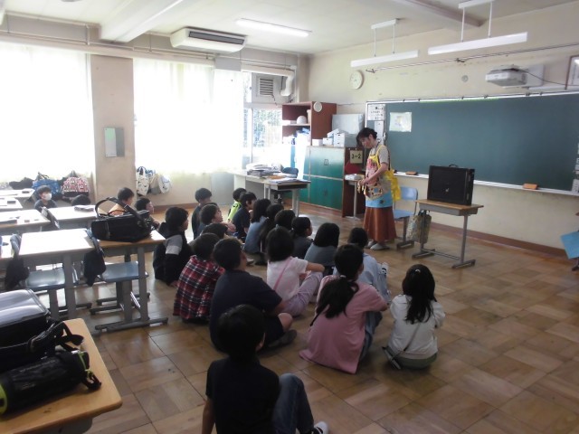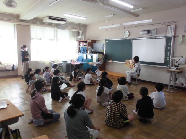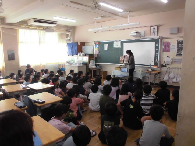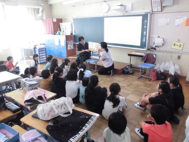 24日(木)の高ヶ坂タイムは、「おはなしたんぽぽ」の皆さんによる読み聞かせを行いました。写真は3年2組から6年生までの様子です。今回は、5年生と6年生は学年一緒に参加しました。子どもたちは静かにお話の世界を楽しむことができました。「おはなしたんぽぽ」の皆様には、朝の忙しい時間にもかかわらず、子どもたちのためにありがとうございました。