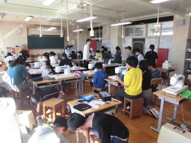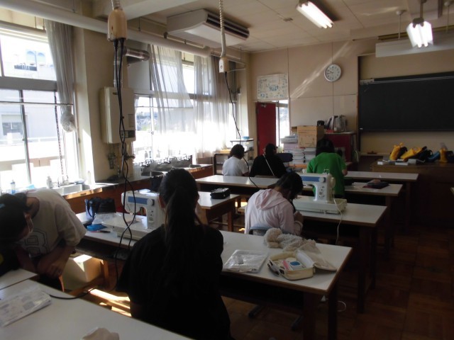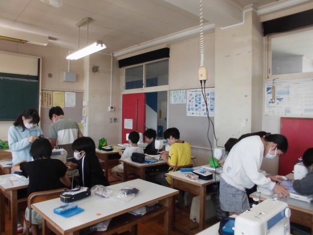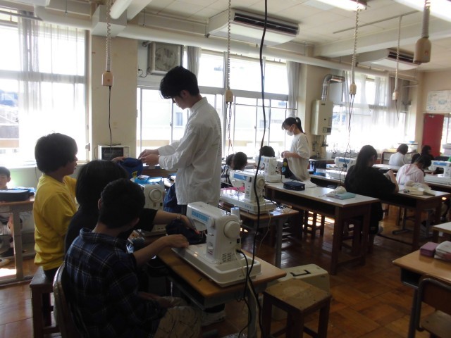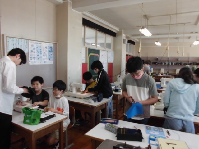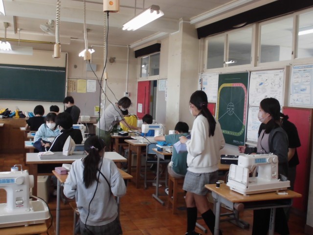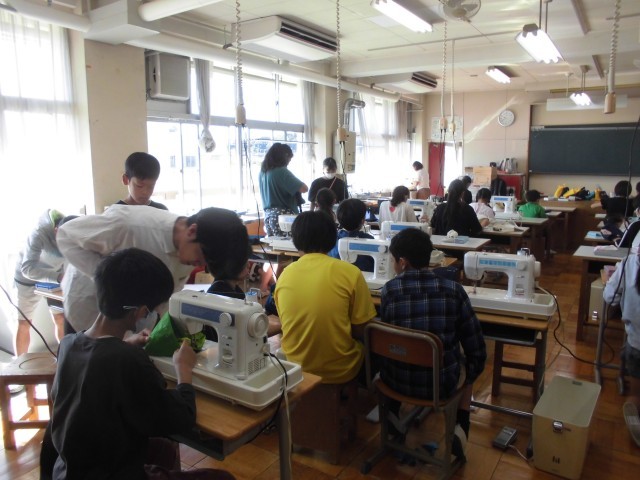 24日(木)1・2時間目、6年1組は家庭科の時間でした。「ミシンでソーイング」の学習です。今回もミシンボランティアとして保護者や地域の皆様にお越しいただきました。「ランチボックス」を制作しています。ミシンの操作方法を友達同士でも教え合う姿がありました。