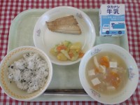 ゆかりごはん いわしの筒煮 菊花和え なすのみそ汁