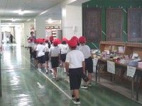 今月の生活目標は「ろうかは右側を歩こう」です。中央階段の踊り場には、写真のような掲示がされています。