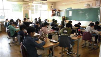 4日(木)朝の読書の様子です。各階ともとても静かで、集中して取り組んでいることがわかります。写真は上から、4年1組、5年1組、6年1組です。