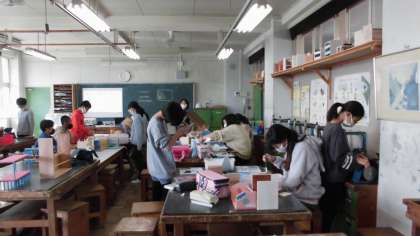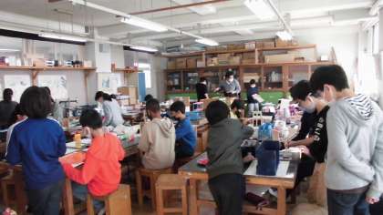 4日(木)の1・2時間目、6年2組は図画工作の時間でした。オリジナル家具の仕上げに取り組んでいました。