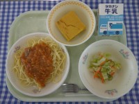 さけのクリームスパゲティ じゃがいものチーズ焼き カラフルサラダ
