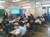 バスに乗る前にクラスごとに写真を撮りました。最初は1組です。
