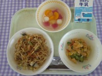 煮込みうどん カレーフライドポテト 青大豆とひじきのサラダ くだもの