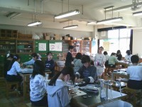 7日(月)の3・4時間目、2年2組は図画工作の時間でした。紙版画の本刷りをしました。順番に先生のそばで、インクをつけたローラーを転がし、バレンでこすりました。完成した作品は、廊下の乾燥棚に保管します。