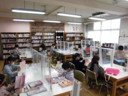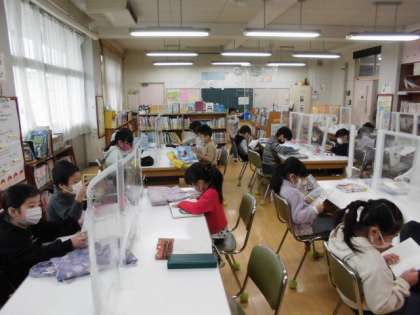 18日(月)の2時間目、2年1組は図書の時間でした。自分の読みたい本を探し、席に戻ると静かに読むことができました。