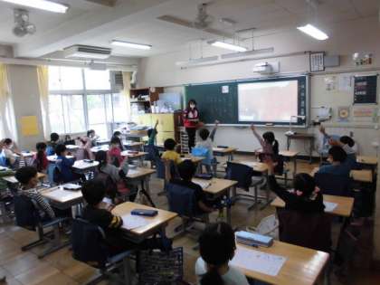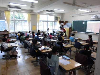 19日(火)の2時間目、1年1組は国語の時間でした。ひらがなの「い」を学習しました。「い」のつく言葉探しをしました。いぬ、いど、いるか、いか、かいなどたくさんの言葉が見つかりました。