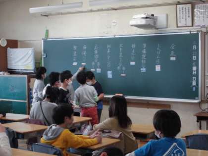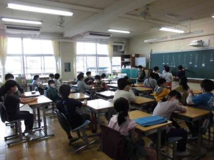 20日(水)の5時間目、5年2組は運動会の係について話し合っていました。今年度は5年生と6年生とで係活動を行います。審判や応援団、放送、用具等自分で考えて立候補をしました。