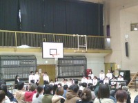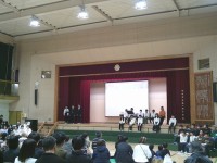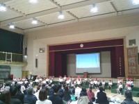 9日(月)の昼休み、1・2年生のリレー練習をしました。選手はリングバトンを使い、半周ずつ走ります。