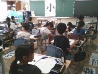 10日(火)の2時間目、4年2組は「エイサー」の踊りで使うパーランクー作りをしました。互いに教え合ったり、完成した人が手伝ってあげたりする姿がありました。