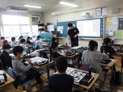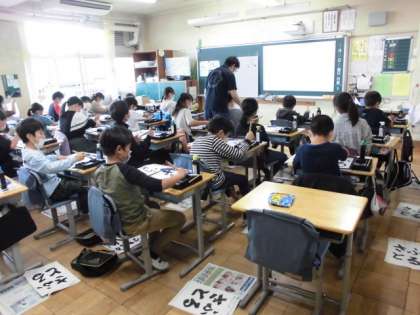 13日(金)の1・2時間目、5年2組は書写の時間でした。毛筆で「ふるさと」と書きました。5年生にとってひらがな4文字を書くのは初めてです。