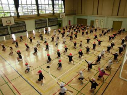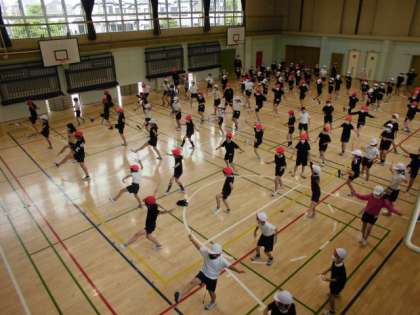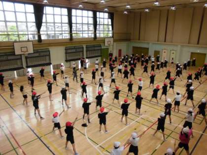 16日(月)の4時間目、3・4年生は体育館で「エイサー」の練習をしました。本番用に着る黒いTシャツも少しずつ登場しています。指導する先生のかけ声に合わせながら、子供たちの動きも徐々にそろってきました。手作りの太鼓はもう間もなくお披露目です。