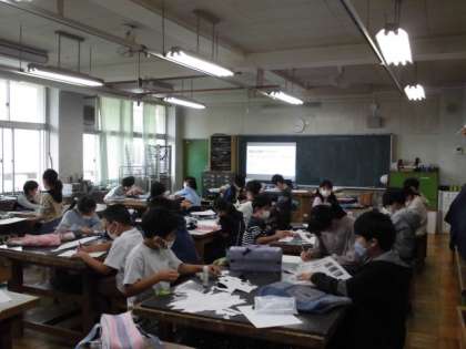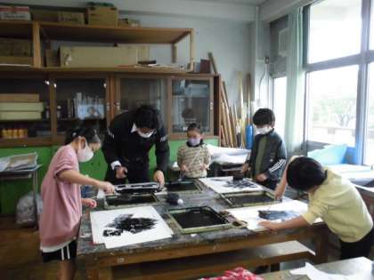 17日(火)の1・2時間目、4年1組は図画工作の時間でした。「紙版画」に取り組んでいます。紙の形を組み合わせて作った生き物を順に版画にしていきました。