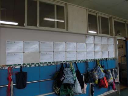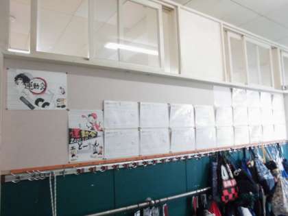 6年生が書いた運動会のめあてです。上の写真が1組、下の写真が2組です。小学校生活最後の運動会にかける思いが伝わります。