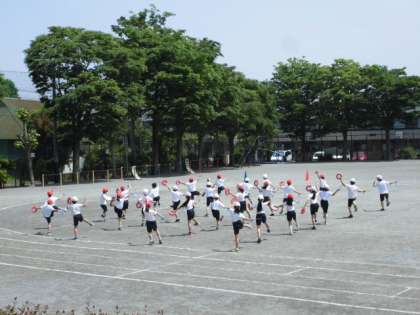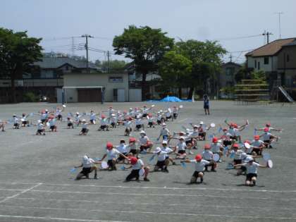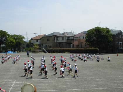 3・4年生のエイサーの練習です。曲の後半で、前後の入れ替えをします。お子さんの踊る場所をご確認ください。