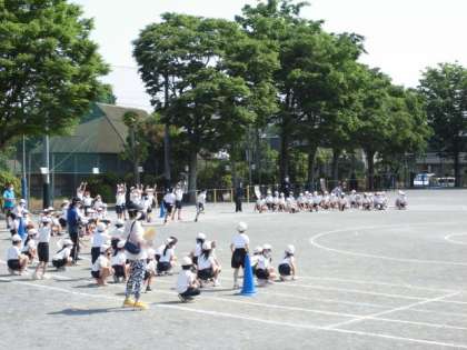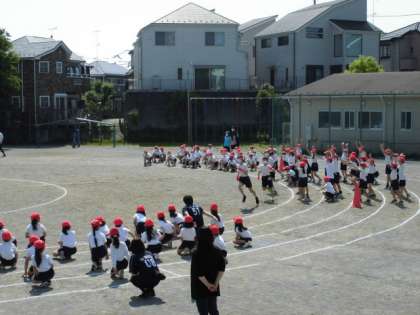 19日(木)の1時間目、4回目の全校練習をしました。最初に、前回雨のためできなかった応援合戦の練習をしました。午後の部の応援合戦では、ウェーブをするのでやり方を確認して行いました。