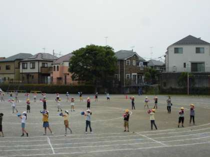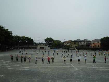20日(金)の2時間目、1年生と2年生がリハーサルをしました。団体演技、50m走の順で行いました。曲目紹介も上手です。