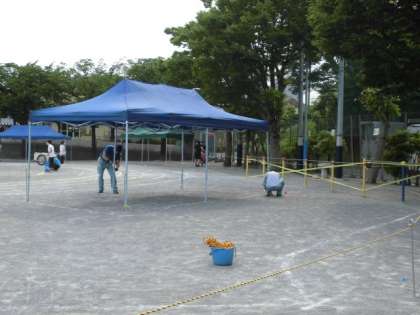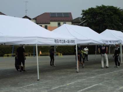 20日(金)、5年生と6年生が下校してから教職員でテント等の設営を行いました。町内会の方が手伝ってくださいました。ご多用のところありがとうございました。