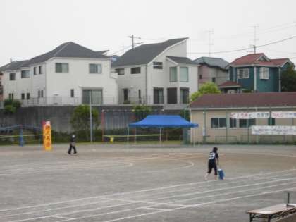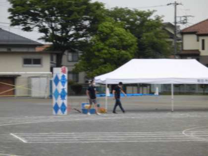 21日(土)午前7時、運動会を実施する判断をしました。教職員みんなでライン引きや用具運び等の準備をしました。