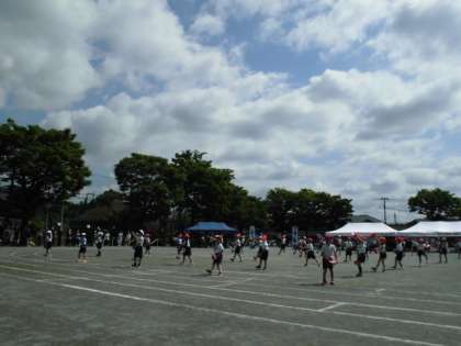 プログラム5番、1年生と2年生による「ミュージックステーション 高ヶ坂45周年バージョン」でした。1年生も2年生も元気いっぱいに踊る姿がありました。