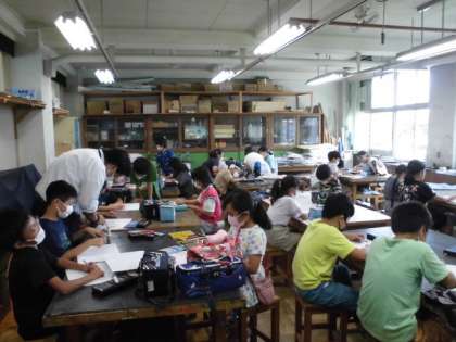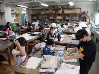 5日(月)の5・6時間目、4年2組は図画工作の時間でした。画用紙に「シーサー」を描きました。シーサーの体つきや模様をそれぞれに工夫して描き、絵の具で色をつけました。