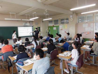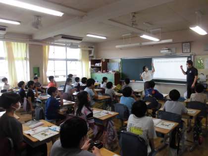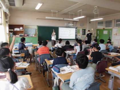 6日(火)の1時間目、5年1組は外国語の時間でした。2組の担任とALTとで進めています。今回は、ある人物についての紹介英文を聞きながら、誰であるかを考えました。答えの中にはお笑いの人も登場しました。